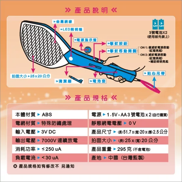 7000V超強電力!! 蚊子、蒼蠅、蟑螂、飛蛾 OUT!!